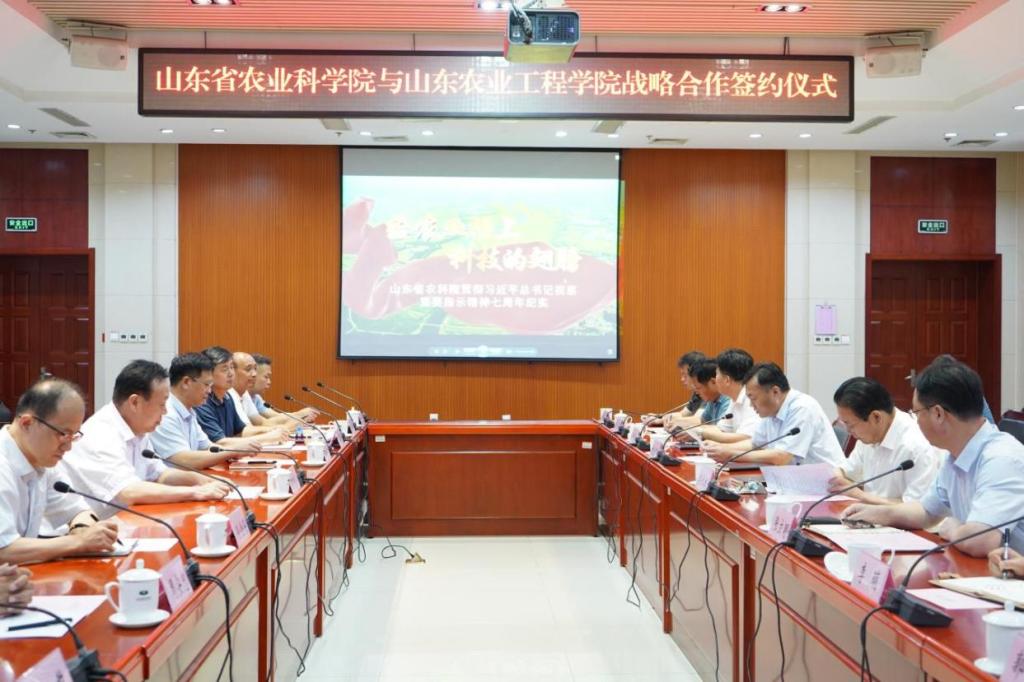 签约仪式前,观看了纪念习近平总书记视察山东省农业科学院七周年宣传片,学习了总书记“给农业插上科技的翅膀”的重要讲话精神。李长胜就山东省农业科学院的概况、发展规划、改革措施、方法成效等做了全面介绍。