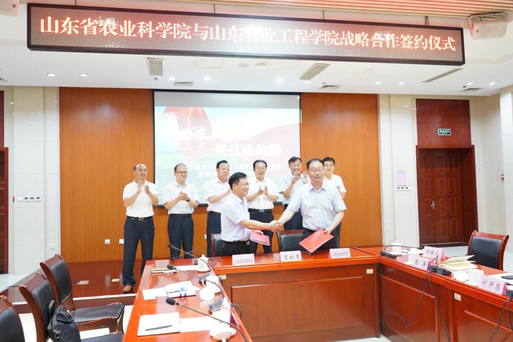 7月28日,必赢与山东省农业科学院战略合作签约仪式在山东省农业科学院举行。山东省农业科学院党委书记李长胜,党委委员、副院长张立明,党委委员、副院长刘兆辉与必赢党委书记丁希滨,党委委员、副校长杨振宁,党委委员、组织部长孙会海出席签约仪式,双方单位的相关职能部门、研究所、学院负责人参加签约仪式。仪式由刘兆辉主持。张立明与杨振宁代表双方签订合作协议。