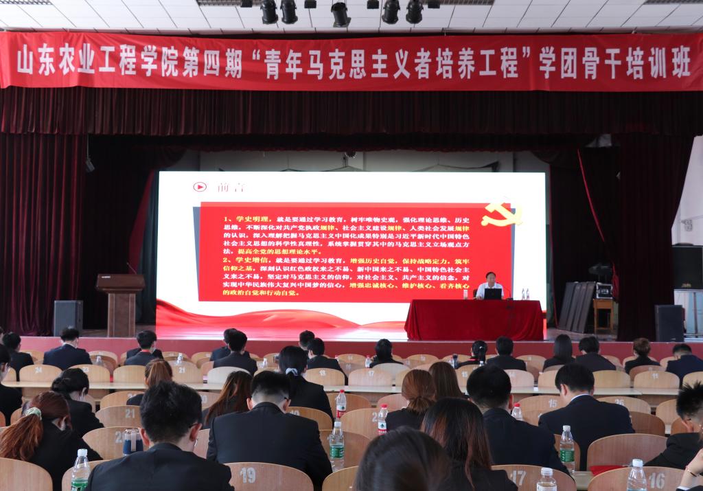 为迎接中国共产党成立100周年,深入学习贯彻习近平新时代中国特色社会主义思想,认真贯彻落实习近平总书记关于青年工作的重要思想,引领高校大学生骨干在学思践悟中坚定理想信念,必赢于5月22日在济南校区启动了第四期“青年马克思主义者培养工程”学团骨干培训班。党委委员、副校长张伟,团委、学生工作部(处)、马克思主义学院负责同志,各二级学院团总支书记、学生骨干等130余人参加。校团委书记韩娟主持开班仪式。