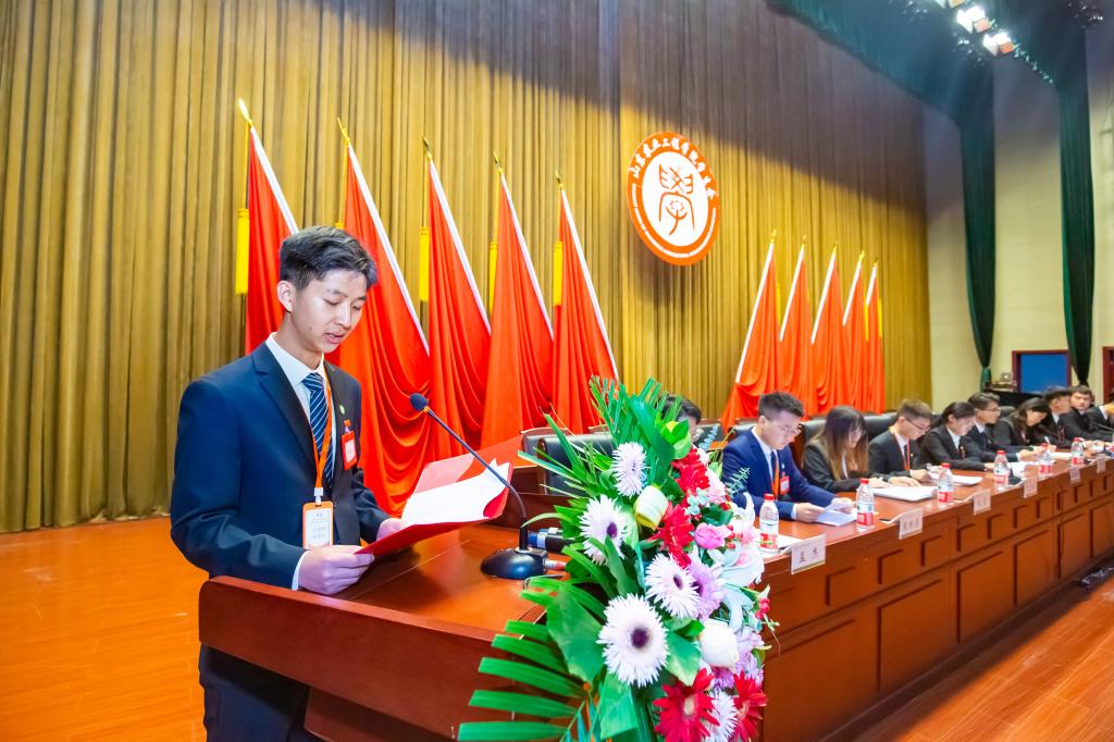 第三十五届学生会执行主席刘睿恒作题为《汲取百年奋斗磅礴伟力以时代担当绽放青春之花》的学生会工作报告,全面客观的总结了学生会一年以来的工作,立足当前提出了新的目标和任务,希望新一届学生会展望新征程,加强党的领导、坚持团的指导,持续提升思想政治引领力,聚焦主责主业、坚持服务中成长,持续提升助力同学成长成才服务力;强化作风整顿、加强工作机制建设,全面提升学生会组织的凝聚力和战斗力。
