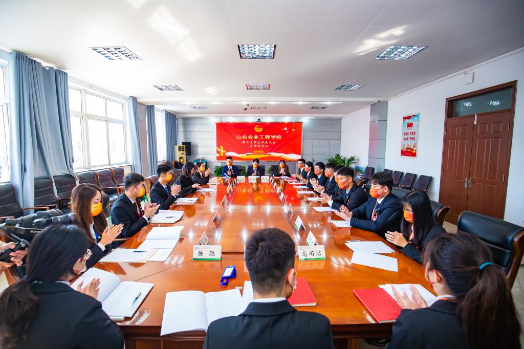 在庆祝中国共产党成立一百周年,全校上下深入开展“四史”学习的重要节点,10月22日至23日,437ccm必赢国际官网第三次学生代表大会顺利召开。学校党委委员、副校长张伟,齐河校区管理办公室、团委等部门负责同志,省学联驻会执行主席刘睿恒,各学院团总支书记出席开幕式。