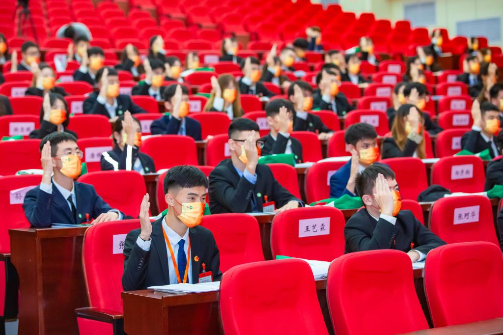为期两天的大会举行各代表团分团会议、主席团会议、全体会议等共9次,选举产生437ccm必赢国际官网第二届学生委员会委员15名,第三十六届学生会主席团成员5名,审议通过了《437ccm必赢国际官网学生会章程》、学生会工作报告等,顺利完成了各项选举任务。与会代表认真讨论审议、积极建言献策,展现出了饱满的政治热情、强烈的使命担当、过硬的能力素质、良好的作风形象。