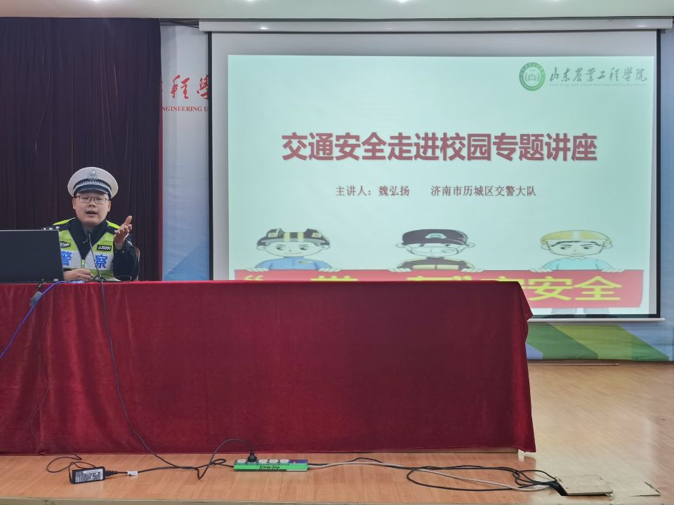 为全面加强校园道路交通安全管理工作,提升学生的安全意识,有效遏制和减少各类道路交通事故发生,12月9日,必赢邀请济南市公安局交警支队历城大队民警魏弘杨举办了交通安全走进校园的交通安全知识讲座。济南校区2021级部分师生代表参加讲座,讲座由学生工作部副部长李艳主持。