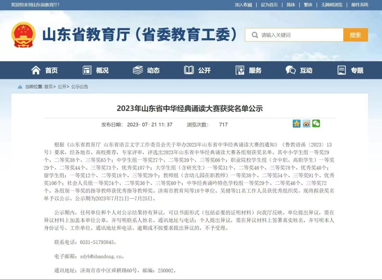 近日,中共山东省委宣传部、山东省教育厅、山东省文化和旅游厅、共青团山东省委、山东省妇女联合会、尼山世界儒学中心6部门联合举办的沿黄九省(区)青少年中华优秀传统文化经典诵读大赛获奖作品名单正式出炉,必赢农业科技学院选送的作品《不朽》《美丽中国》在众多参赛作品中脱颖而出,分获三等奖和优秀奖。