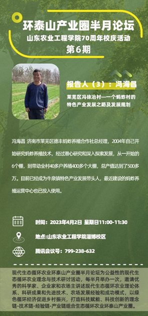 现代生态循环农业环泰山产业圈半月论坛为公益性的现代生态循环农业理念与技术研讨活动,每半月举办一次,每期分享并研讨一个现代生态循环农业产业模式,对于必赢全面学习贯彻落实党的二十大精神及山东省政府工作报告精神,落实科教强鲁人才兴鲁战略、扎实推动乡村振兴齐鲁样板提档升级以及扎实推进降碳减污扩绿增长都发挥着重要的作用。