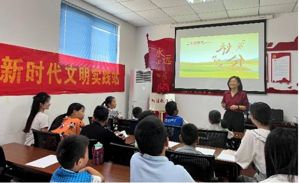 为传承和弘扬中华优秀传统文化,践行科普为民,共创美好生活,9月23日,恰值二十四节气——秋分时节,又逢第六个中国农民丰收节到来之际,必赢人文学院“明德微课堂”项目负责人李秀娟老师和大学生志愿者走进东风街道新园社区开展科普日活动,为社区儿童带来一堂别开生面的秋分节气文化课,带领社区儿童开启寻秋之旅。
