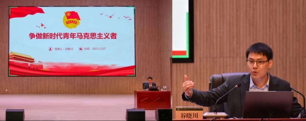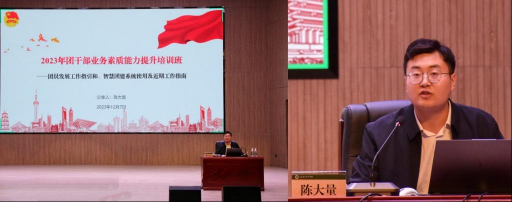 培训活动中,团委副书记董小靖从共青团的职能定位、共青团的组织建设、共青团的队伍建设和深化高校共青团改革四个方面,增强了团干部对学校共青团工作的了解,对如何强化基层团组织建设给予了指导。陈大量老师以团员发展、“智慧团建”系统使用为切入点,强化团干部责任担当,夯实团务工作之基。最后,团委书记谷晓川以“争做新时代青年马克思主义者”为题,从“小我”与“大我”的关系出发,引发团干部对人生价值的思考,结合自身经历、运用大量案例和视频生动地阐释了信仰的力量,并通过分析中国青年马克思主义者的成长历程为青年学子提供了行动方向。