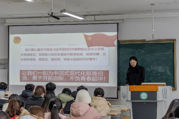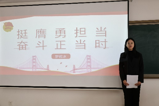 罗若冰以“挺膺勇担当 奋斗正当时”为主题,结合学习贯彻习近平新时代中国特色社会主义思想和党的二十大精神,讲述了自己的学习成长故事,着重分享了自己在基层志愿服务、社会实践等方面的经历和经验。她建议团员青年要做好对未来大学生活的规划,多思考、多总结,积极参加校园文化、科研竞赛、社会实践等活动,在基层志愿服务中沉淀担当,在实践锻炼中淬炼初心。