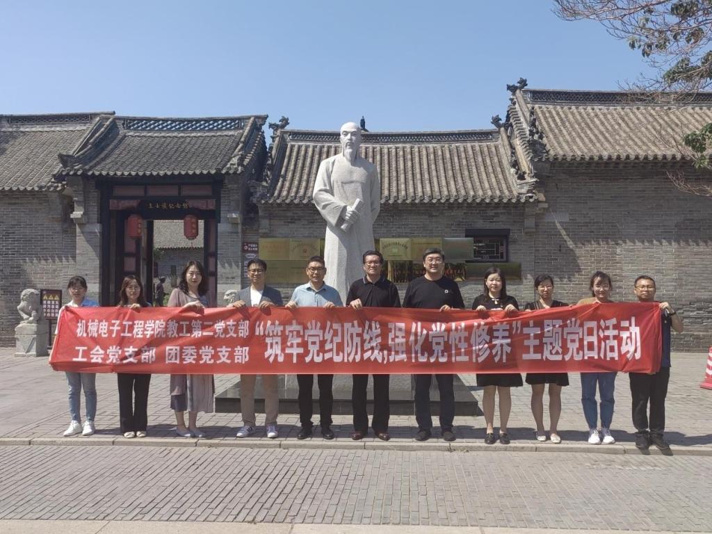 为推动党纪学习教育走深走实,进一步强化党员党性修养,加强党性教育,深化廉洁自律,6月3日下午,机械电子工程学院教工第二党支部联合工会党支部、团委党支部,一行11人赴淄博市桓台县王渔洋纪念馆共同开展“筑牢党纪防线,强化党性修养”主题党日活动。