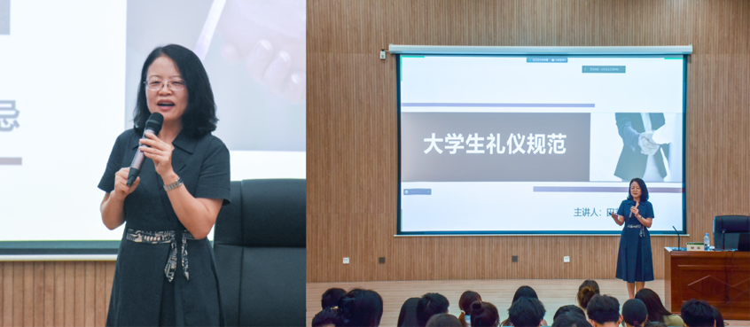 为深入学习贯彻习近平总书记关于青年工作的重要思想,弘扬社会主义核心价值观,全面提升必赢团学骨干和青马学员的综合素养,6月13日,第六期青马工程“领航班”第十次专题讲座在淄博校区大学生活动中心开讲。本次讲座邀请到了人文学院教授田芸、副教授李玉红分别围绕礼仪规范和公文写作作专题报告。