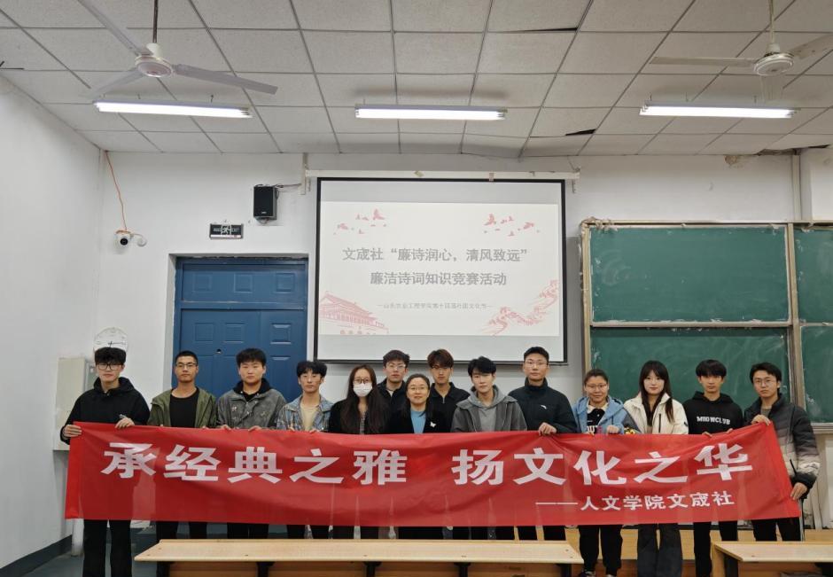 为进一步推动廉洁文化建设,营造风清气正的校园环境,近日,来自人文学院的“文宬社”举办“廉诗润心 清风致远”廉洁诗词知识竞赛活动,共240余名学生参加初赛。初赛主要通过线上答题的方式进行。