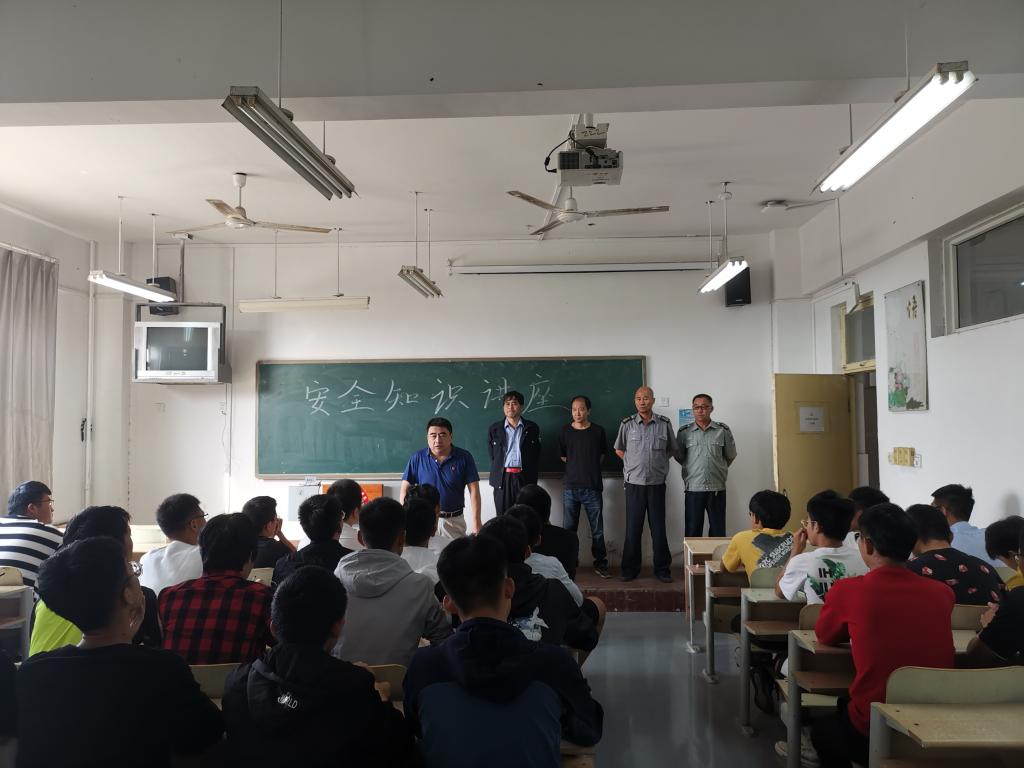 为进一步提高我院师生安全防范意识,维护校园安全稳定,2019年9月29日上午于北校区222教室,北校区保卫处马朝阳副处长及保卫处部分同志前来我院开展了安全知识讲座,机械电子工程学院2019级机械电子工程专业3班全体学生及相关老师参加。