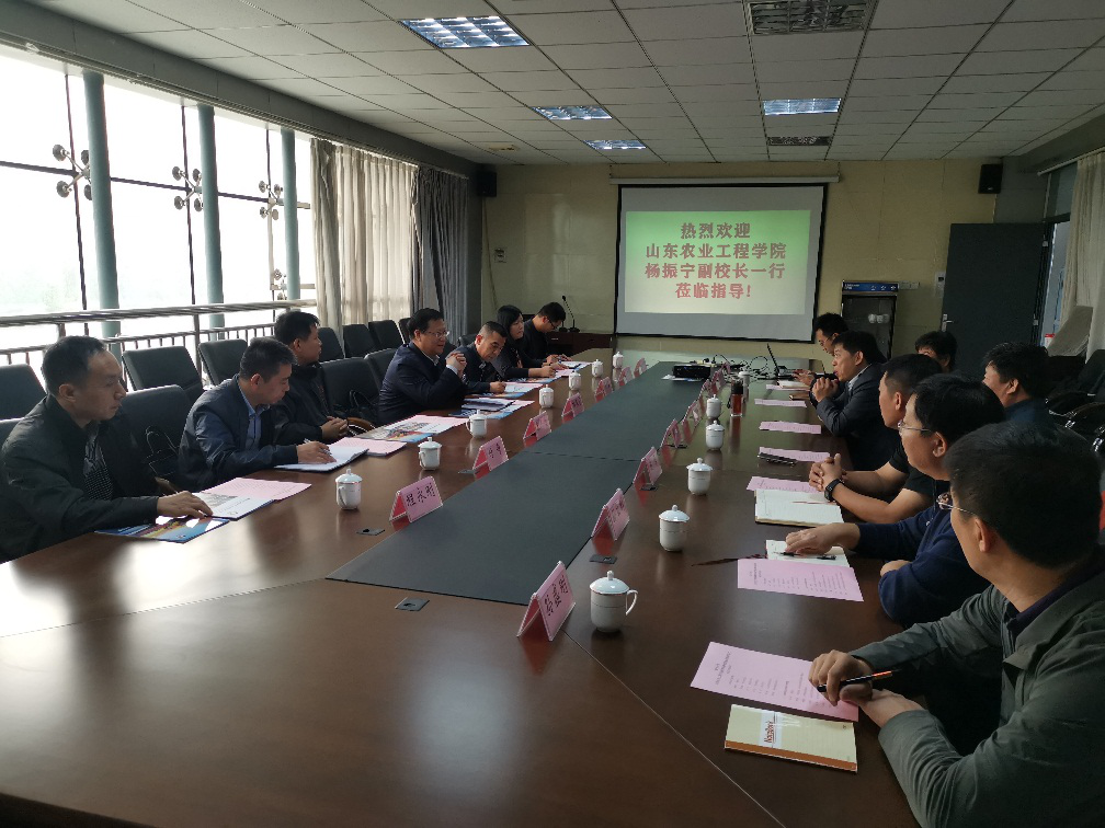 按照校党委“不忘初心、牢记使命”主题教育的工作安排,10月11日上午,杨振宁副校长在机械电子工程学院党总支书记马勇、院长宋卫海、教务处副处长高千秋、科技处付琦等同志的陪同下到山东省农业机械科学研究院开展“深入加强校院校企合作”的学习调研活动。山东省农业机械科学研究院副院长张立峰、山东双佳农装科技有限公司董事长张军强、山东双佳农牧机械科技有限公司董事长李寒松、农产品加工技术装备研发中心主任赵峰、副主任孙立刚等参加了交流座谈会。