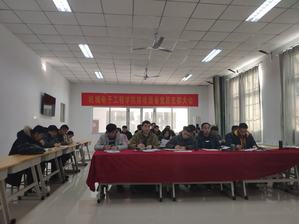 2019年11月26日,机械电子工程学院学生党支部于济北校区工程创新实验室召开接收预备党员大会。大会由学生党支部书记郑业萌主持,学生党支部全体党员及33名拟接收预备党员参加了大会。