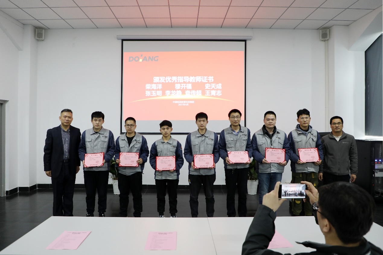 4月2日上午,437ccm必赢国际官网-中德栋梁科技集团机械电子工程专业毕业实习结业典礼在中德栋梁举行,机械电子工程学院院长宋卫海、机械工程教研室主任李曰阳、中德栋梁科技集团副总经理王亮亮、产业学院执行院长李安超、部分实习教师、全体实习学生出席典礼。典礼上双方领导对实习过程中表现优异的企业指导教师和毕业实习生进行的表彰,中德栋梁也对实习生、学校表达了殷殷期盼和美好的祝愿。通过本次毕业实习,同学们加深了对工业机器人、智能制造、人工智能等先进技术的了解,提高了综合运用所学专业知识解决实际工程问题的能力,为就业等打下了坚实基础。