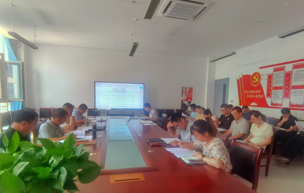 7月20日下午,机电学院在理工东楼B308会议室召开学业预警工作会议,会议由宋卫海院长主持,党总支书记马勇,副院长李震、赵志桓,全体辅导员、班主任参加会议。