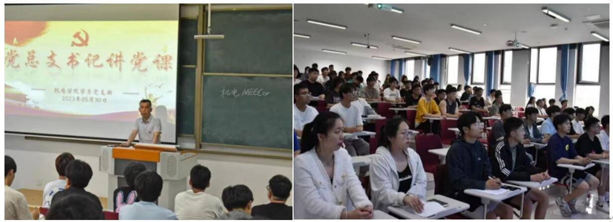 为深入学习贯彻党的二十大精神,加强学习贯彻习近平新时代中国特色社会主义思想主题教育,进一步提升学生党员的理论素养,2023年5月30日,机械电子工程学院党总支书记马勇为全体学生党员开展专题党课教育活动。