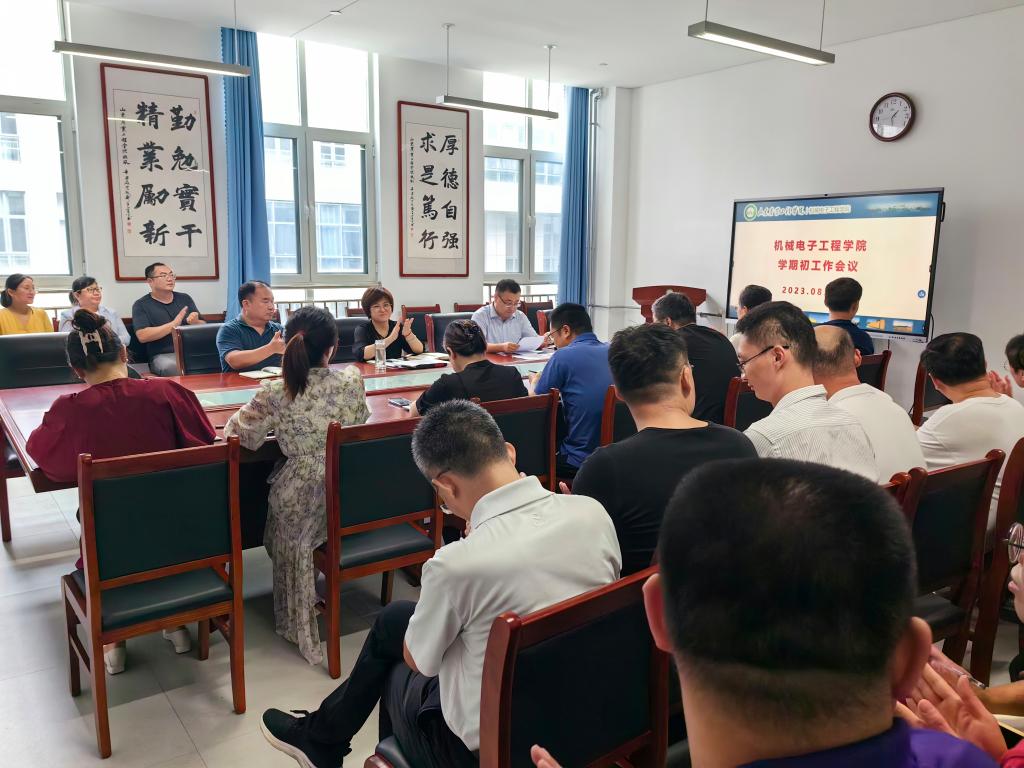 8月24日下午,机械电子工程学院在淄博校区理工东楼B304会议室召开学期初工作会议,传达学习《张鸿波同志在2023年暑期处级干部读书班上的动员讲话》和《李进京同志在2023年暑期处级干部读书班上的总结讲话》精神,部署学期初主要工作任务。会议由机电学院院长赵志桓主持,党总支书记李艳出席并讲话,学院党总支副书记、副院长李震及全体教职工参加会议。