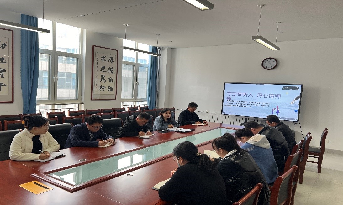 第二部分是针对师德师风进行集中学习,重点明确了高校教师职业行为十项准则,要求教研室全体教师在日常生活和工作中均需注意自己的一举一动、一言一行,为学生们做好榜样,真正做到言传身教。会上潘莹月主任通过教育故事的分享与各位老师共勉,最后提炼出如何做好老师,如何做到德才并重、以德为主,如何真正成为四有好老师。