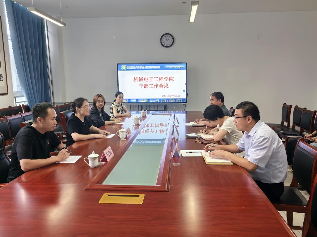 9月5日下午,机械电子工程学院在淄博校区B304会议室召开干部工作会议,校党委委员、党委组织部(党校、巡察办公室)部长韩娟出席会议并讲话。党委组织部(党校、巡察工作办公室)副部长王岑竹、学院领导班子、教研室主任、教师代表等参加会议。