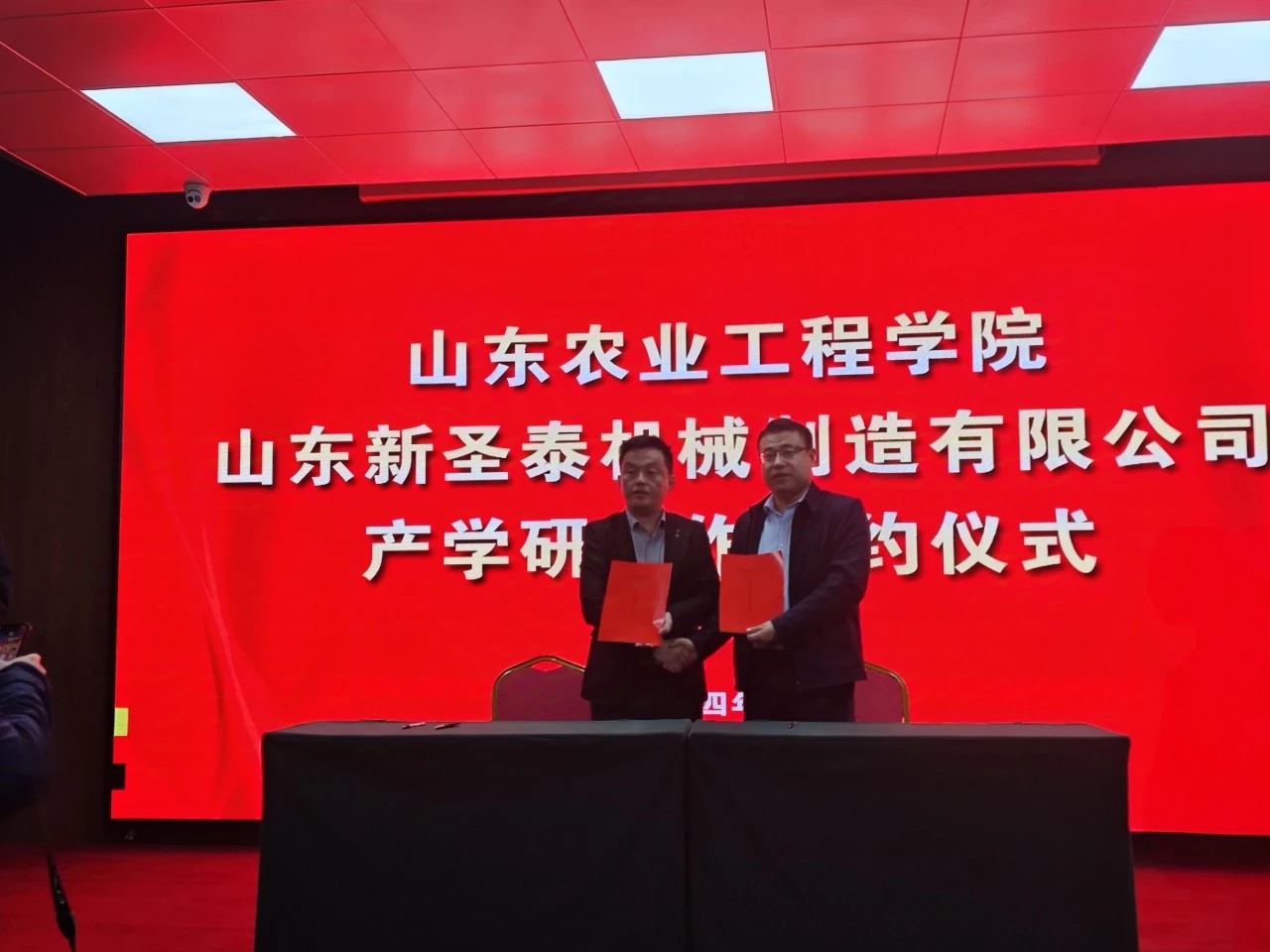 会上,山东新圣泰机械制造有限公司销售部侯喆部长对新圣泰公司发展历程和装备产品进行讲解,并提出企业对于农机装备科研研发的迫切需要。随后437ccm必赢国际官网赵志桓教授与山东新圣泰机械总经理张志强签订了在新圣泰建立赵志桓教授专家大院《合作协议》,并由济宁市农业机械现代化促进中心刘奇志主任和省农业农村厅农机化管理处邱庆浩副处长为赵志桓教授专家大院揭牌,这标志着双方合作迈出了坚实的一步。