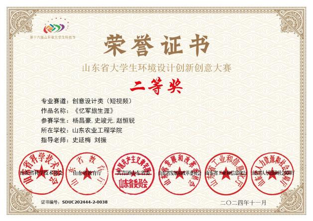 此次大赛吸引了省内众多高校的优秀学子踊跃参加,我院高度重视此次比赛,在各方面都给予高度支持,派出了专业能力强、经验丰富的教师团队对参赛学生作品进行悉心指导。我院参赛团队积极备赛,严格按照大赛规则扎实开展相关工作。在备赛期间,指导教师和参赛学生一同深入探讨作品主题,引导学生挖掘作品中的创新点,从作品的最初构思到最终方案的敲定,每一个环节都严格把关,共同完成了作品的整体制作。最终,作品《忆军旅生涯》获省级二等奖,《反私反诈行动》《印象淄博》《护河好帮手-新型水面垃圾收集装置》获得省级三等奖,作品《中国梦新气象新作为》和《心的蜕变》获得省级优秀奖