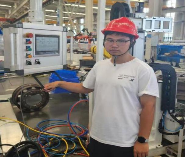 暑假期间,机械电子工程学院2024级电气工程及其自动化(专升本)1班霍福轩同学,在专业老师徐长青带领下,前往青岛索林特科技工程有限公司与山东森峰激光科技有限公司的合作项目现场,开展为期一个月的社会实践活动。此次实践聚焦轮毂生产领域的激光焊接及质量检测非标设备,核心任务是实现待焊接轮毂的自动化输送。