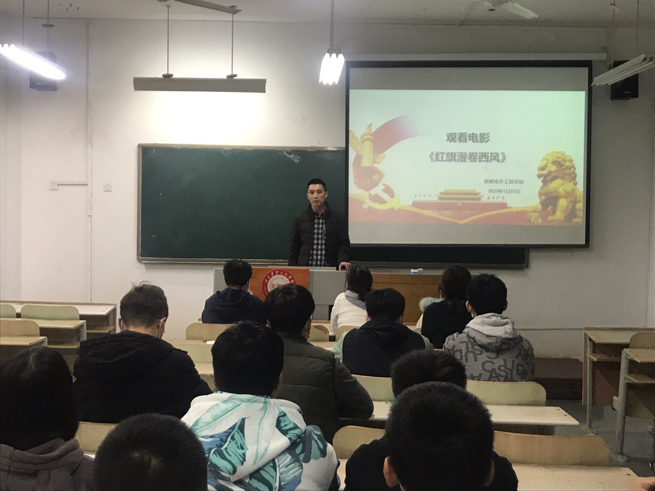 为贯彻落实习近平新时代中国特色社会主义思想和党的十九大精神,深入学习习近平总书记关于“用党的历史教育党员、教育干部、教育群众尤其是教育青少年”的重要指示精神,机械电子工程学院党总支组织师生观看中共党史教育电影《红旗漫卷西风》。
