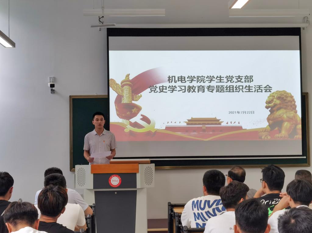 为进一步发扬党的优良传统,增强党小组成员凝聚力,保持党的先进性,根据学院党史学习教育方案安排,机电学院学生党支部于2021年7月22日下午在淄博校区理工东楼B115教室召开党史学习教育专题组织生活会。会议由支部书记王世辉同志主持,机电学院学生党支部全体成员参加,校党委委员、组织部部长孙会海列席指导。