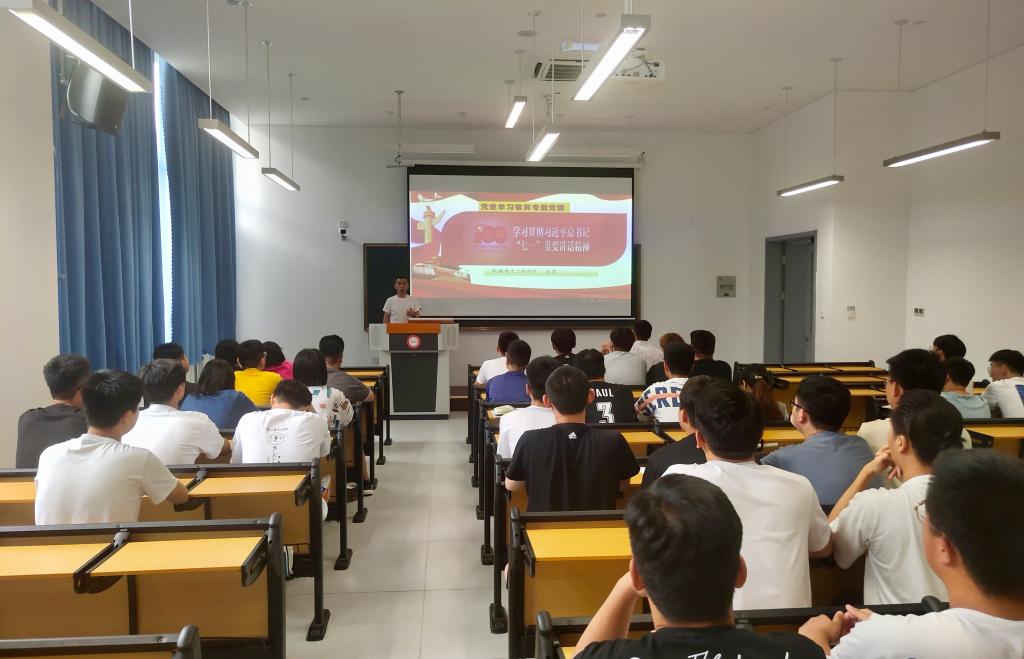 7月22日下午,机电学院党总支书记马勇同志为学生党支部上主题党课,专题学习习近平总书记关于“七一”重要讲话精神。