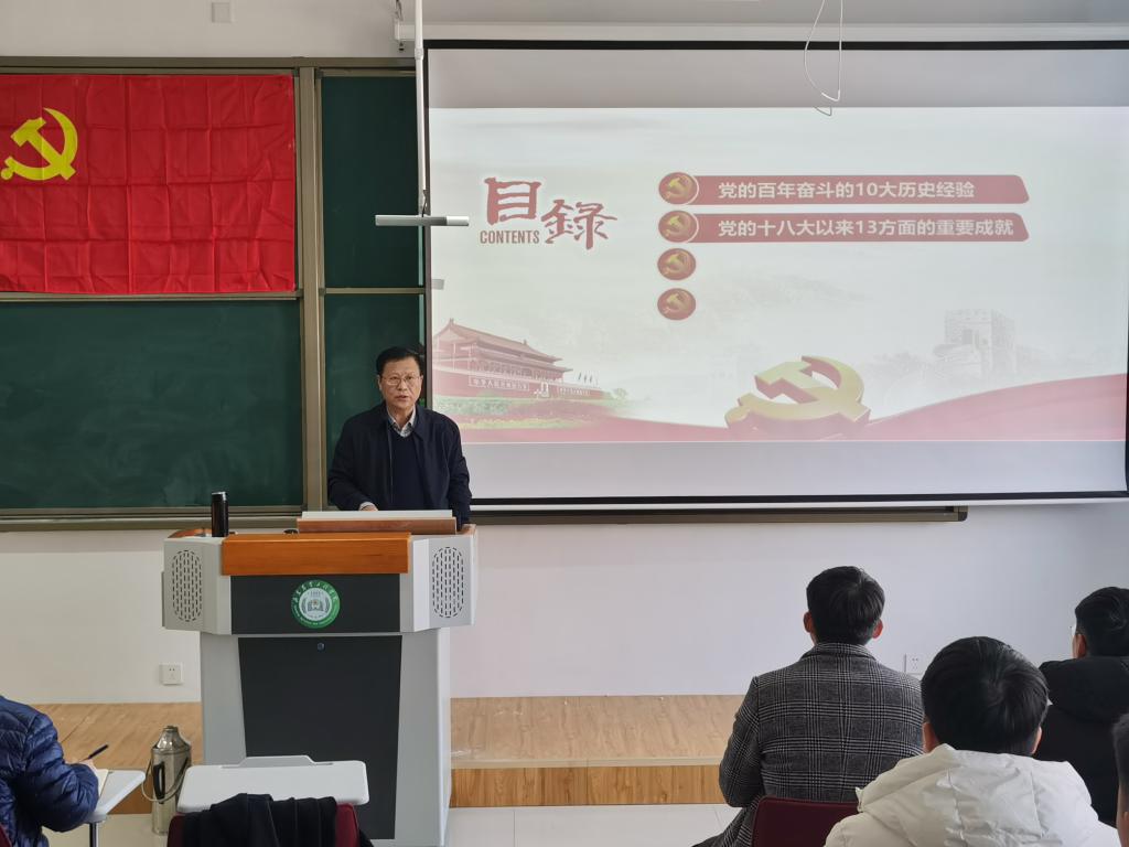 杨振宁副校长从审议通过的2个文件、百年历程创造的4个伟大成就、党的百年奋斗的5大历史意义等九个方面,向与会人员进行了全面系统的党的十九届六中全会精神的讲解。
