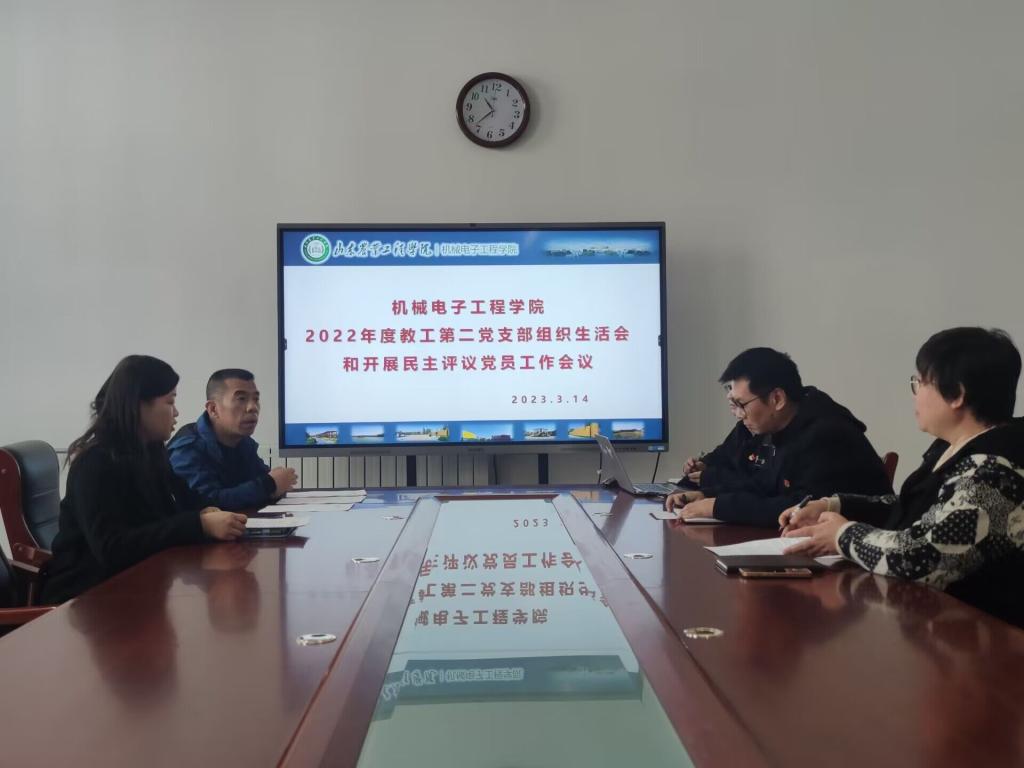 为认真贯彻落实党的二十大精神,坚持不懈用习近平新时代中国特色社会主义思想凝心铸魂,按照校党委《2022年度基层党组织生活会和开展民主评议党员工作实施方案》的要求,3月14号上午,教工第二党支部在淄博校区理工东楼B304会议室召开组织生活会和民主评议党员会议,会议由党支部书记潘莹月主持,全体党员参加了会议,学院党总支书记马勇出席并作工作指导。