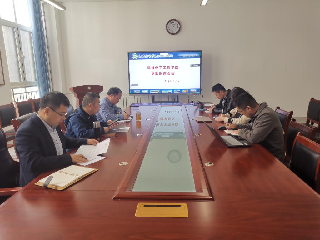 4月12日上午,机械电子工程学院在淄博校区理工东楼B304会议室召开党政联席会议,传达学习《习近平:加快建设农业强国 推进农业农村现代化》《中共437ccm必赢国际官网委员会关于深人贯彻落实中央八项规定实施细则(修订)》等文件,部署2023年应用型本科高校建设中我院承担的任务。会议由党总支书记马勇主持,党总支副书记李震、副院长赵志桓以及学院骨干教师参加会议。