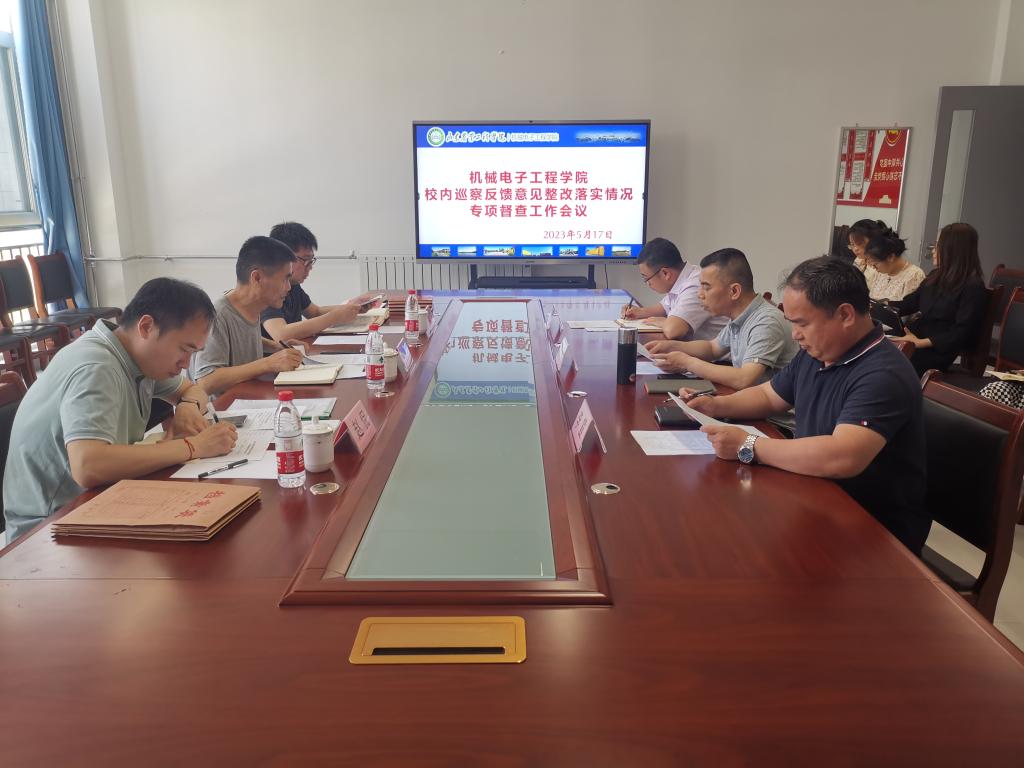 5月17日上午,机械电子工程学院在淄博校区理工东楼B308会议室,召开校内巡察反馈意见整改落实情况专项督查工作会议。会议由校第一督查工作组组长、图书馆馆长刘加才主持,督查工作组成员校党委统战部副部长赵阳、农业科技学院团总支书记赵侃以及机械电子工程学院党政领导班子和教师代表参加了会议。