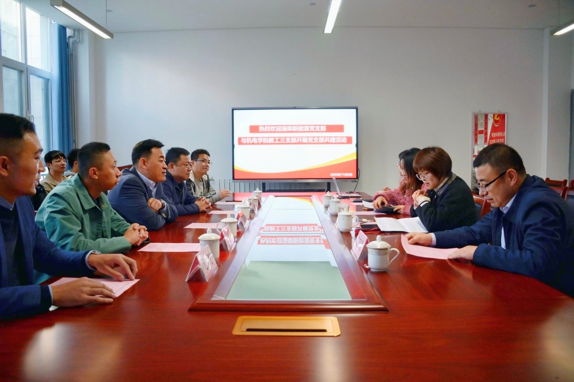 为深入推进党建工作的开展,提升基层党建工作水平,充分发挥党支部联建的优势互补作用,促进我院与淄柴新能源公司的交流与合作。11月6日,机械电子工程学院教工第三党支部与淄柴新能源党支部于淄博校区理工东楼B308教室开展以“校企融合共发展,支部联建同进步”为主题的党支部联建活动。学院党总支书记李艳、院长赵志桓、教工第三党支部书记刘伟丽、副书记董玉振等全体党员同志与淄柴新能源党支部书记王建忠、工会主席张士越、副总经理刘臻、办公室主任高金梁、党群主管范文珂等党员同志参加会议。