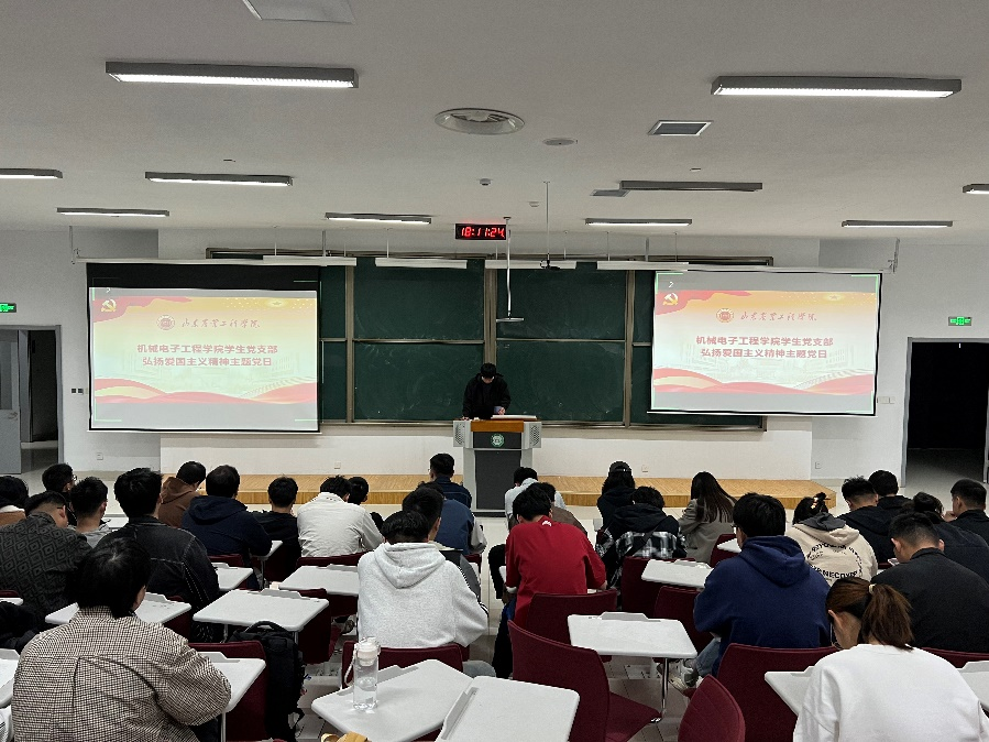 为深入学习贯彻习近平新时代中国特色社会主义思想,激发学生党员爱国情怀,提高学生党员的思想政治觉悟。机械电子工程学院学生党支部于10月9日在淄公北楼B102教室开展弘扬伟大爱国主义精神主题党日活动。此次活动由学院学生第三党支部书记胡晓龙主持,学生党支部全体成员参加。