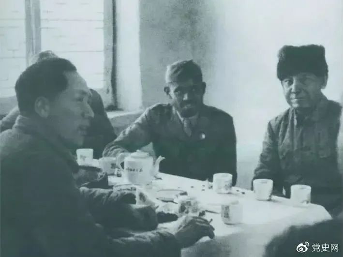 1939年2月14日,毛泽东与印度援华医疗队成员爱德华(右一)、柯棣华(右二)亲切交谈。