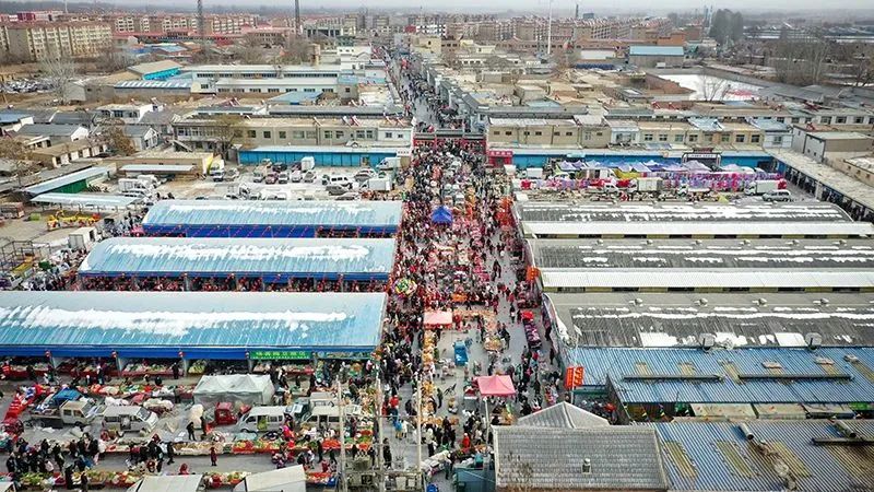△2023年1月14日,宁夏银川市贺兰县百年乡村大集金贵大集上货品琳琅满目,洋溢着浓浓年味,吸引人们前来选购年货。