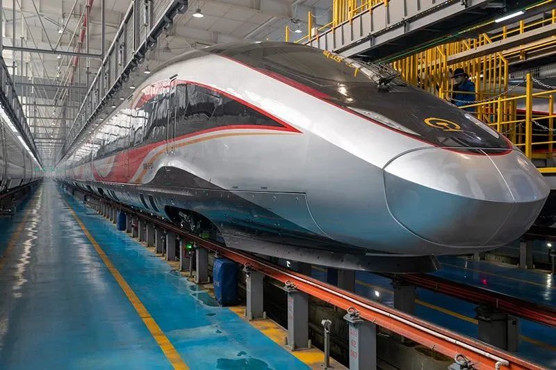 △2023年1月16日,复兴号家族中最“抗冻”、最智能的成员——CR400BF-GZ型复兴号高寒智能动车组落户黑龙江省,这是时速350公里的复兴号动车组目前到达纬度最高、气温最寒冷的地区。
