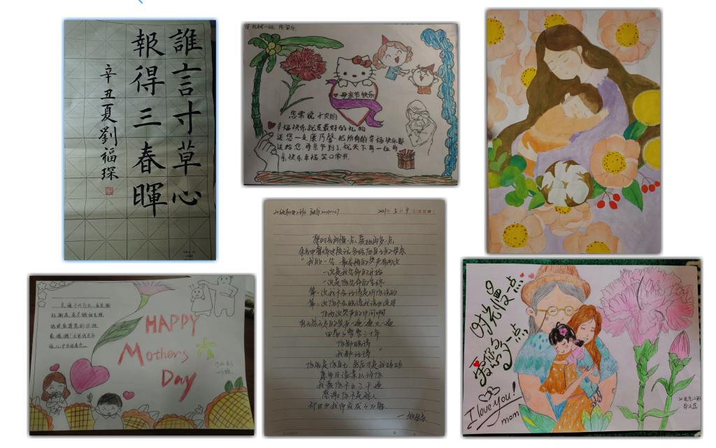 本次比赛分为书法类和绘画类,截止5月10日,共收到各班参赛作品40件。参赛者用自己的文字和绘画记录他们与母亲成长的点滴、记录那些欢笑和关爱、也记录成长旅途中那些酸涩、误解甚至隔阂、记录我们血液中那永远相连无法隔断的母爱。