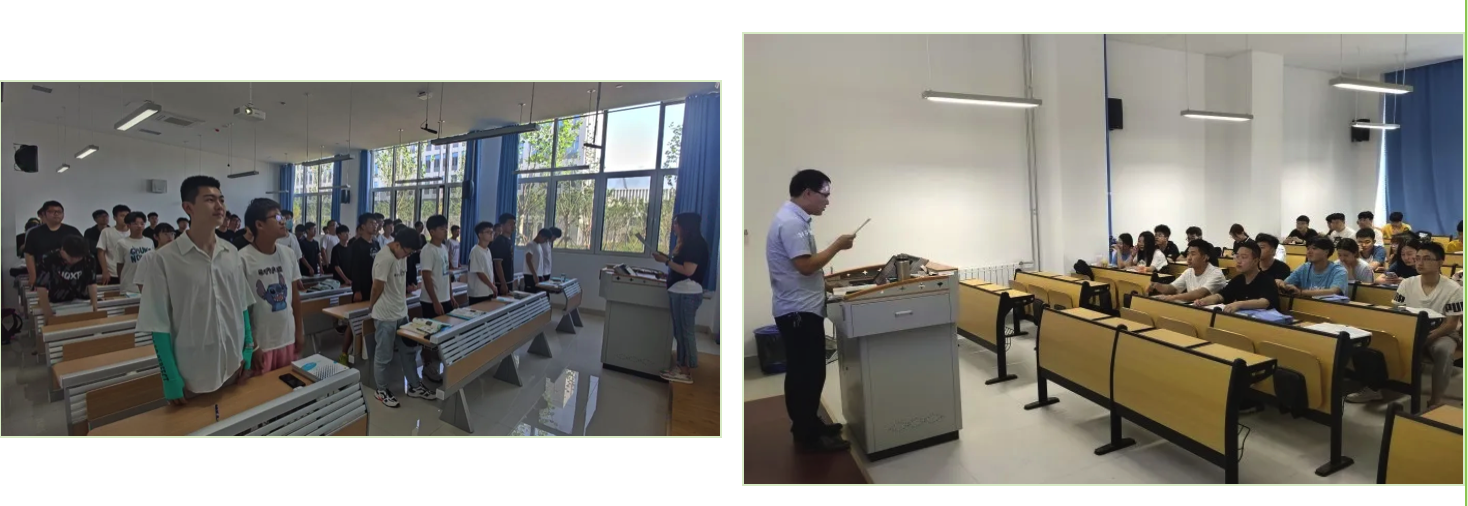 上午第一节课上课前,各班级任课教师宣读《本科教学工作合格评估百日誓师大会动员令》,同学们共同宣誓。随后,学院组织部分同学和教师于淄理工东B304会议室,共同学习动员令并为夺取本科评估的最后胜利进行宣誓。