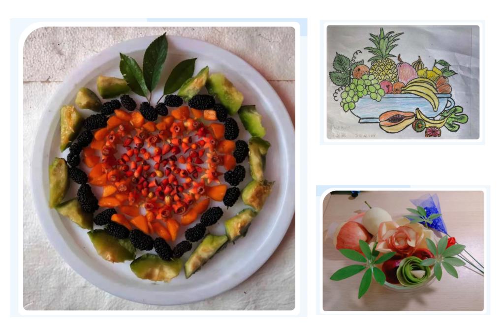本次水果拼盘大赛要求同学们以“果乐一夏,有你真甜”为主题,利用新鲜水果设计出具有趣味性和创造性的作品。天马行空的想法付诸于小小的果盘之中,色彩鲜艳的水果在各位“设计师”的巧手下变成富有创意的艺术品。水果拼盘从造型、构思意念到名称都极尽心思,充分体现同学们准备的精心及创意。