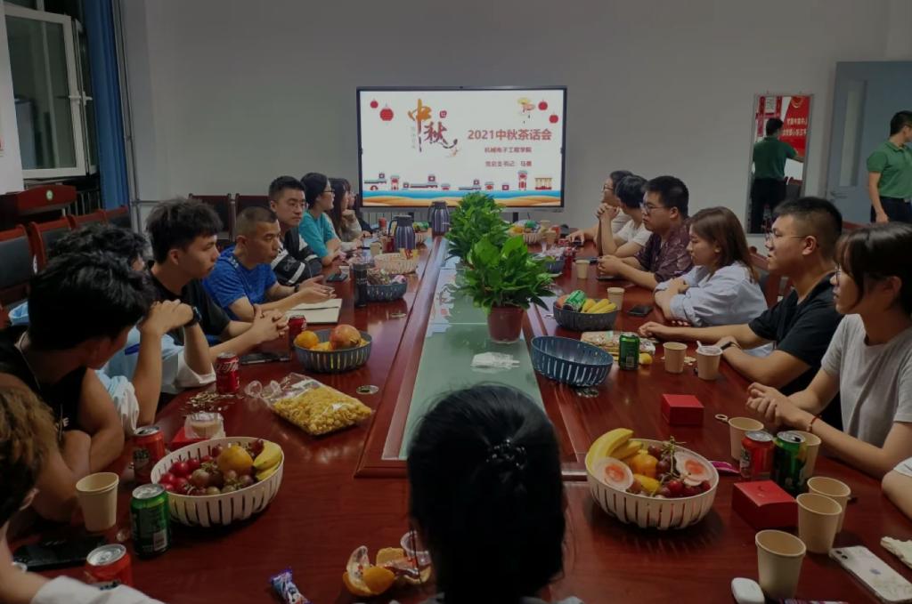 随后,在淄博校区理工东B308会议室举办2021中秋茶话会,活动由学院党总支书记马勇主持,2021级辅导员卢山及机电学院、信工学院学生代表参加活动。茶话会上,师生们就开学以来的学习、生活等各方面的情况进行了积极互动与交流,大家一起品尝美味的月饼与水果。同学们纷纷表示感谢老师的关心,表示将以更好的状态投入到学习中去,不坠青云之志,执着追梦,不辜负家长和老师的期望,为学校的发展注入活力,为实现强国梦作出自己的贡献。