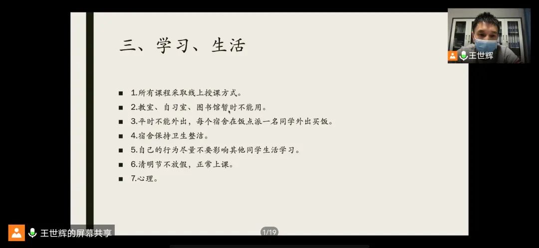 首先,会议主持人总结了必赢近期的防疫工作情况,并代表学校向疫情防控中的医护人员和志愿者们表示感谢,同时肯定了同学们为疫情防控所做的付出。关于什么时候能解除封寝,老师们向同学们耐心解释了学校的防疫政策,表示一切以安全为主,学校会最大程度地保障同学们的权益。其次,在学习方面,老师们强调疫情封校是把双刃剑,是考验和提高自制力的绝佳时机。希望同学们端正学习态度,合理安排时间,认真学习。最后对于同学们在网课期间可能出现的负面心理状况,老师们指出可以为自己设立一些目标、发展一些爱好,多接触愉悦的事物,以提升幸福感。