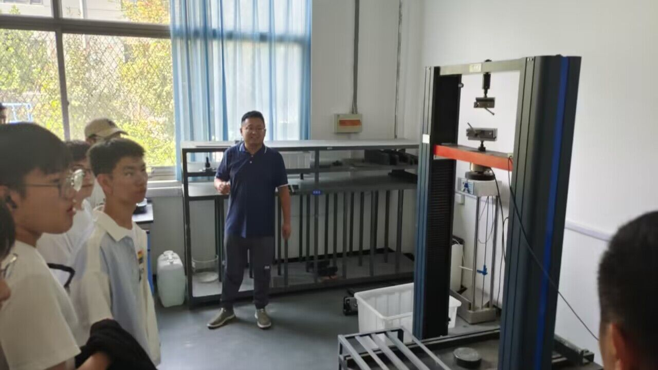在实验室参观中,同学们通过讲解员的介绍,了解测量玻璃硬度的多种方法。他们通过观察实验员如何使用硬度计进行测量,对硬度与玻璃的质量和强度之间的关系有了更深的认识。这一环节使同学们了解到玻璃材料的性能评估所进行的步骤,也让他们认识到了材料质量对工程项目的重要性,受益良多。