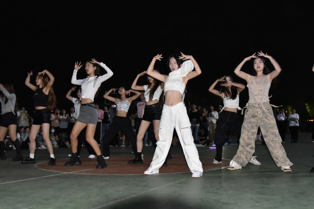 夜幕降临,伴着节奏轻快的背景音乐,随舞活动拉开序幕。此次活动分为两个环节。首先进行路演,篮球场上的舞蹈爱好者伴随着音乐大胆展现自己,干练有力的动作,点燃了活动现场,也点燃了现场每一位观众的热情,欢呼声、掌声和歌曲交织,青春之花完美绽放。随后进行随机舞蹈,随着歌曲一首又一首地变换,同学们纷纷跑向舞台,她们在欢快的节奏中跳跃,尽情展现舞蹈的魅力,用自信的笑容和欢快的舞姿惊艳全场,观众的掌声接连不断,全场的氛围逐渐升温,欢呼声此起彼伏。今晚,舞蹈爱好者们将这份对舞蹈真挚的爱推向高潮,燃动青春,热爱永不谢幕!