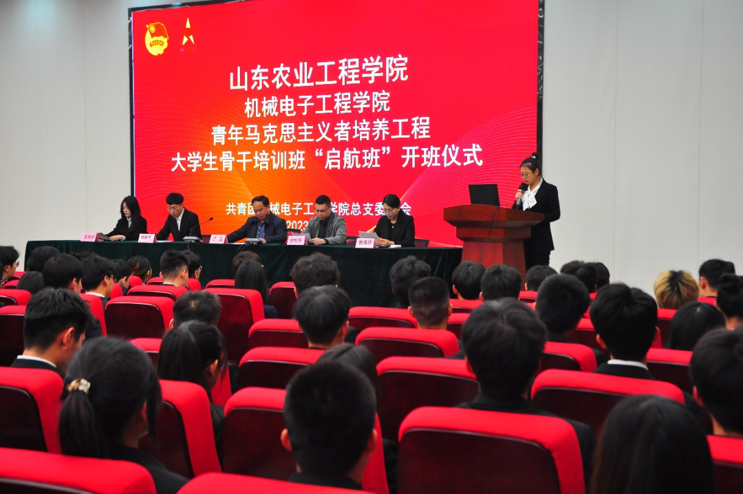 为全面贯彻落实习近平新时代中国特色社会主义思想,深入学习宣传贯彻党的二十大精神,扎实推动青年马克思主义者培养工程深入实施。11月24日晚上,机械电子工程学院青年马克思主义者培养工程大学生骨干培训班“启航班”开班仪式在淄博校区文法西楼A104隆重举行。学院党总支副书记李震、全体辅导员老师、青马工程“启航班”全体学员参加仪式,会议由秦玉莹老师主持。
