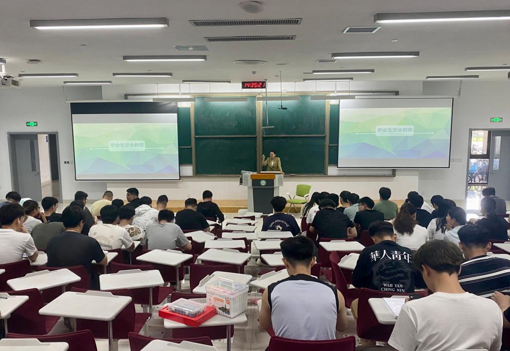 会议伊始,毕业班辅导员为大家介绍了毕业典礼、颁发毕业证等各项活动的具体安排,对放假时间、离校时间、离校流程等问题为同学们进行了详细的解答。随后,辅导员围绕诚信教育的主题,强调了诚实守信在学业和就业中的重要性,通过具体的案例,向同学们传达了诚信为本的理念,引导同学们在今后的学业生涯及职业发展中时刻践行诚实、守信的价值观念。紧接着,辅导员为毕业生们开展就业教育,鼓励同学们积极面对就业市场,多尝试招聘、社会类考试等就业机会。在廉洁教育上,辅导员号召广大毕业生遵纪守法,修身律己,在成长拨穗期扣好廉洁自律的“第一扣”,在成长黄金期系好廉洁自律的“安全带”。最后,毕业班辅导员对同学们寄予美好祝福,希望同学们在未来的工作岗位上作出贡献,用实际行动为母校增光添彩