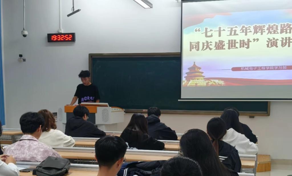为庆祝中华人民共和国成立75周年,弘扬爱国主义精神,激发同学们的民族自豪感与责任感。机械电子工程学院于10月13日在淄公北楼B110教室举办“七十五年辉煌路,国庆同庆盛世时”主题演讲比赛。此次比赛由我院学生会学习部承办。