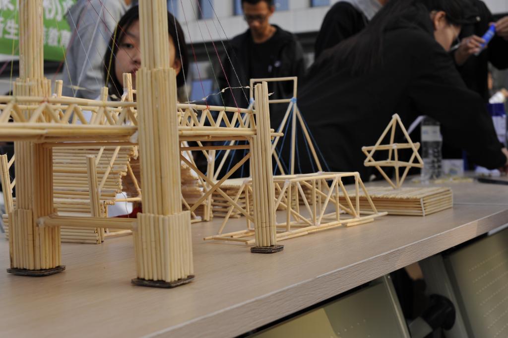 此次活动以“绿色节约,筷筑未来”为主题,旨在通过“筷子搭桥”这一独特的比赛形式,弘扬廉洁文化,倡导绿色生活。此次参赛作品分为两部分:一部分是在宿舍按小组自行制作并带来现场的作品,另一部分是现场搭建的作品。比赛前,同学们积极收集使用完的筷子,并亲自进行回收和清洗。活动中,参赛同学们集思广益,充分发挥想象力和创造力,利用筷子和胶水等材料,精心设计和制造出了形态各异的桥梁模型。成功搭好的桥梁均可获得一个象征着廉洁的盖章,以此表彰同学们的创新与环保精神。